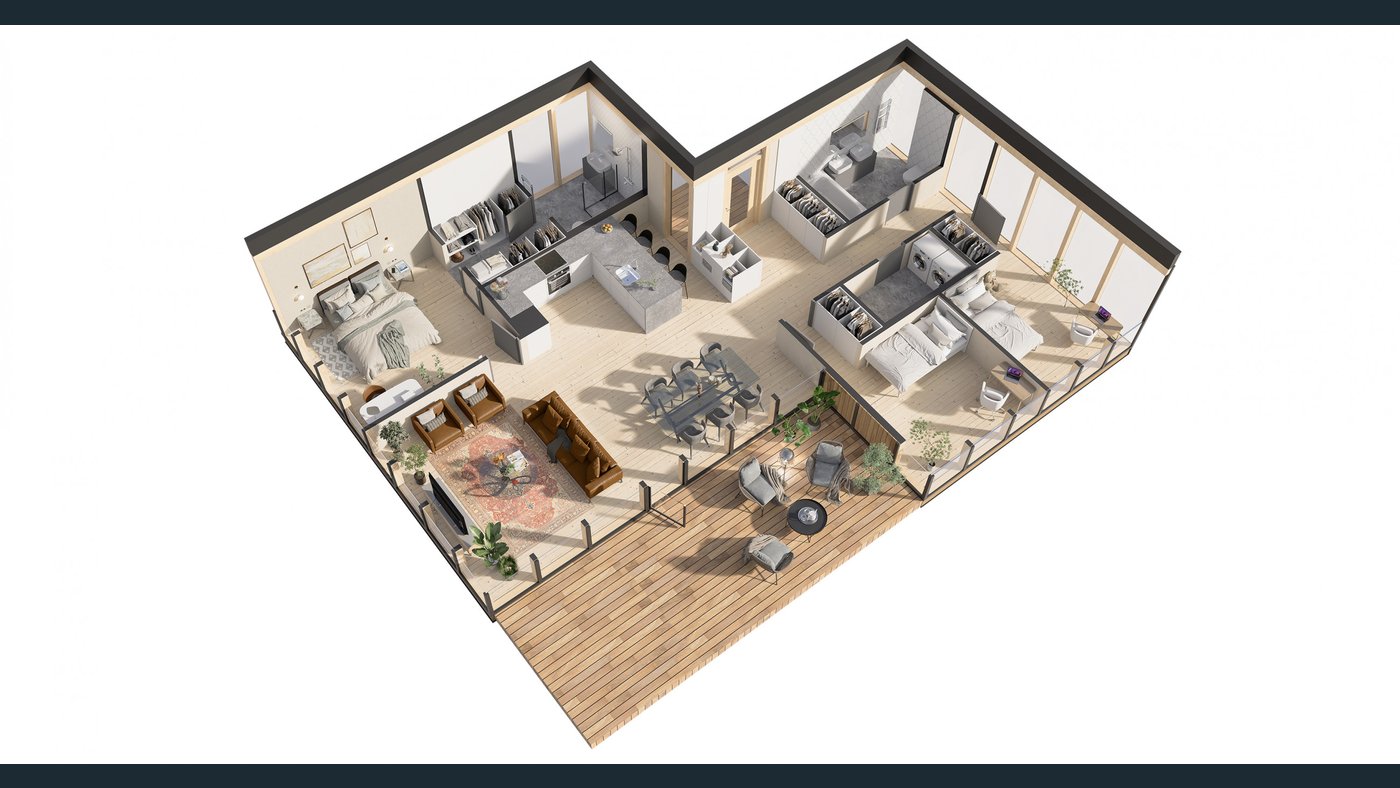 - Large and energy-efficient windows with 4-layer glazing