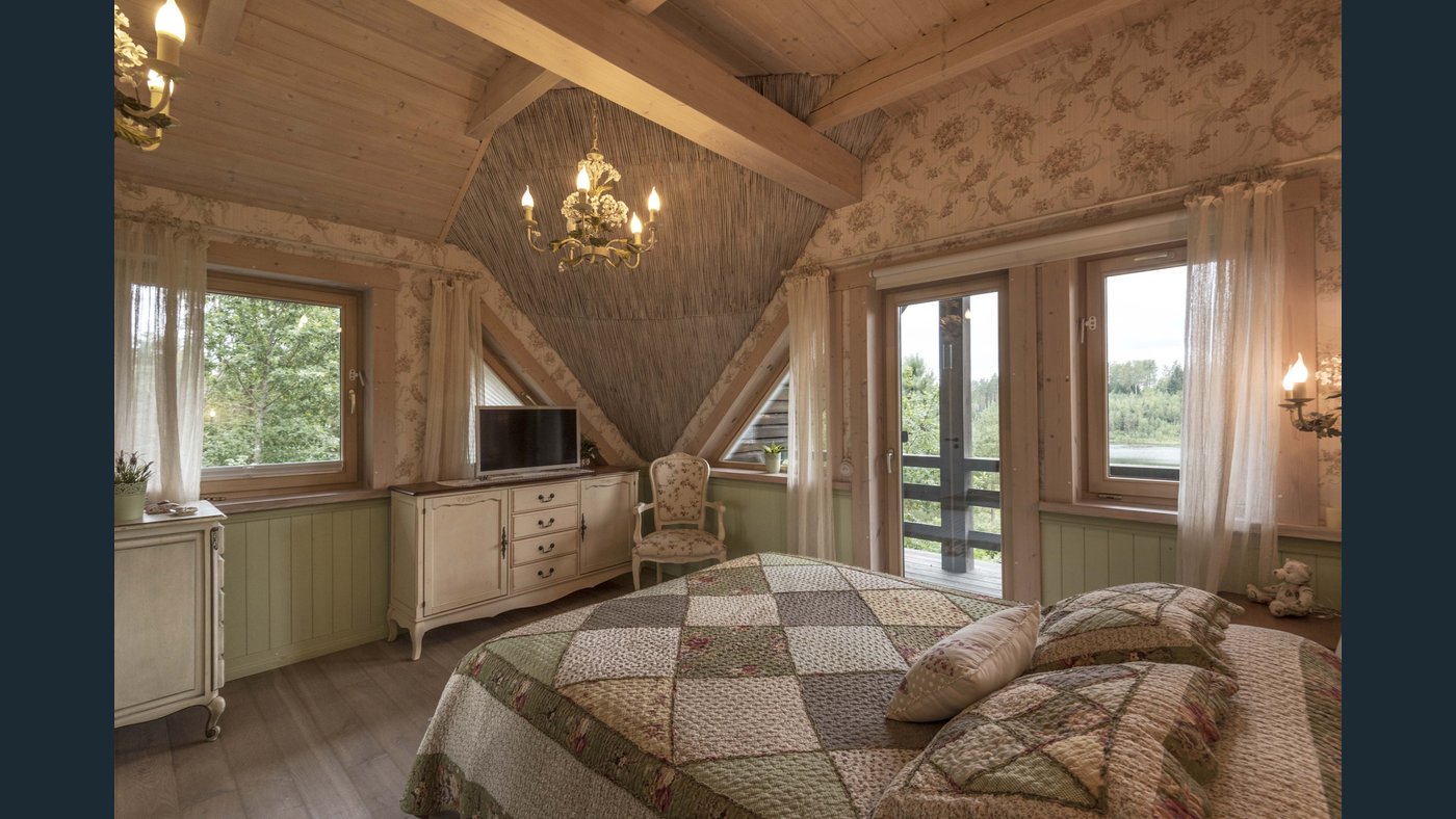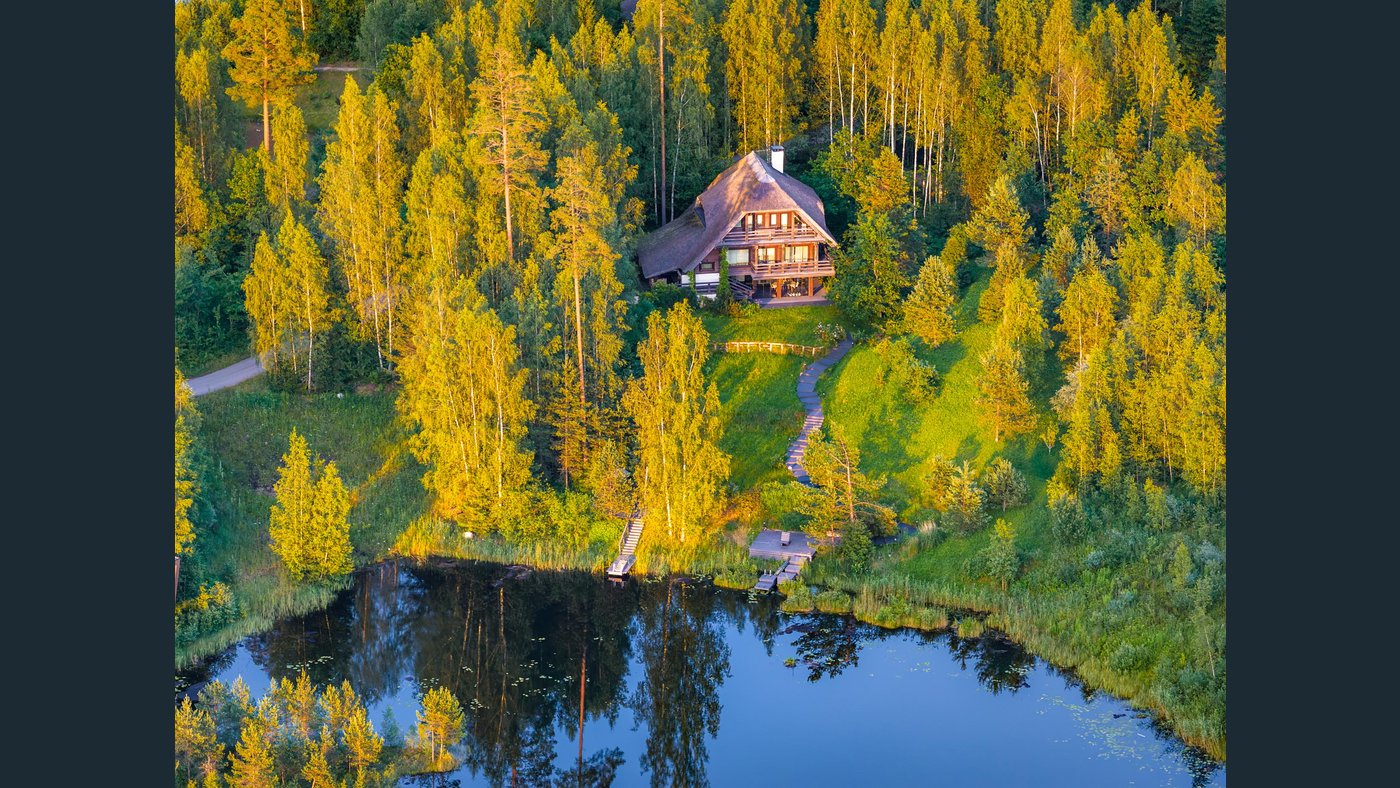 Trīs stāvu māja pilnībā gatava un labiekārtota pastāvīgai dzīvošanai gleznainā meža ieskautā vietā plaša ezera krastā. Māja būvēta un labiekārtota ar kvalitatīviem materiāliem, dizains ieturēts vienotā vintage stilā, radot vidi, kur apvienots mājīgums ar praktiskumu.