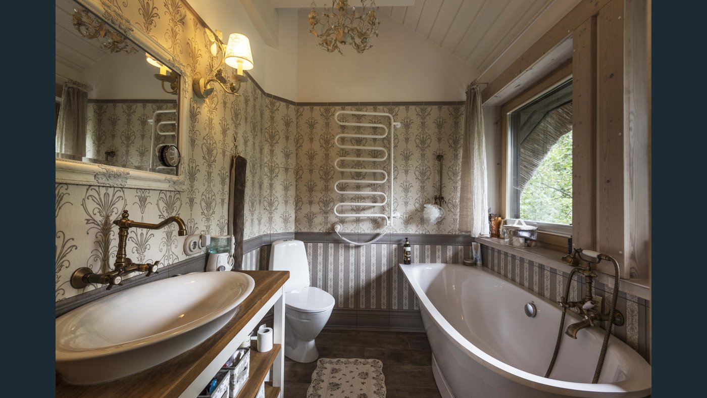 Augšējā otrajā stāvā atrodas trīs omulīgas guļamistabas, divas vannas istabas.